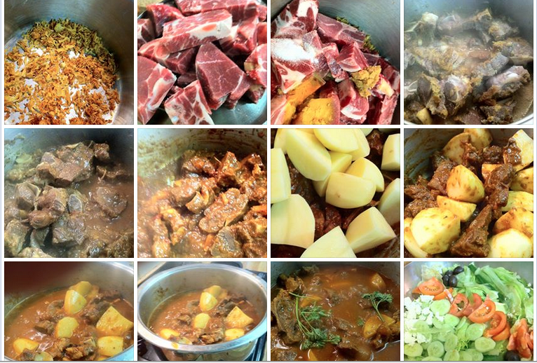 Serve with rice or roti or even better lekker with pap so u can have lekker pap and vleis