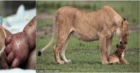 I was busy on twitter and saw this pictures of Lioness and her lion cub and had to share it with you. In contrast to the little baby Caleb Hope that was thrown in the rubbish bin for ants to eat.