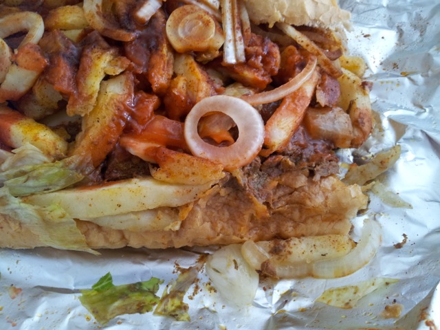 So we were in Cape Town, this April for a few days. The weather, eish was real slaap stad weather and also perfect weather for lekker slap/tjlap chips. So I was still not convinced about the gatsby, so I decided to hunt for the Great Gatsby. We did a survey on the Ask Nanima page and found this place was voted tops. We drove around a while searching for this place near Ottery. Apparently it was voted the great gatsby in Cape Town by the Cape Argus. So we had to taste it.