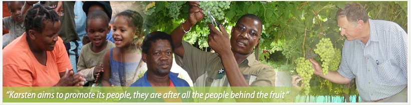 Within a distance of 300 km’s the Karsten Group owns eight fruit farms along the Oranje River, each comprising an independent production centre with a complete packing line for every 40 ha of table grape vineyards. An apple an pear farm was added in 2000 in the Ceres area with 129ha of orchards