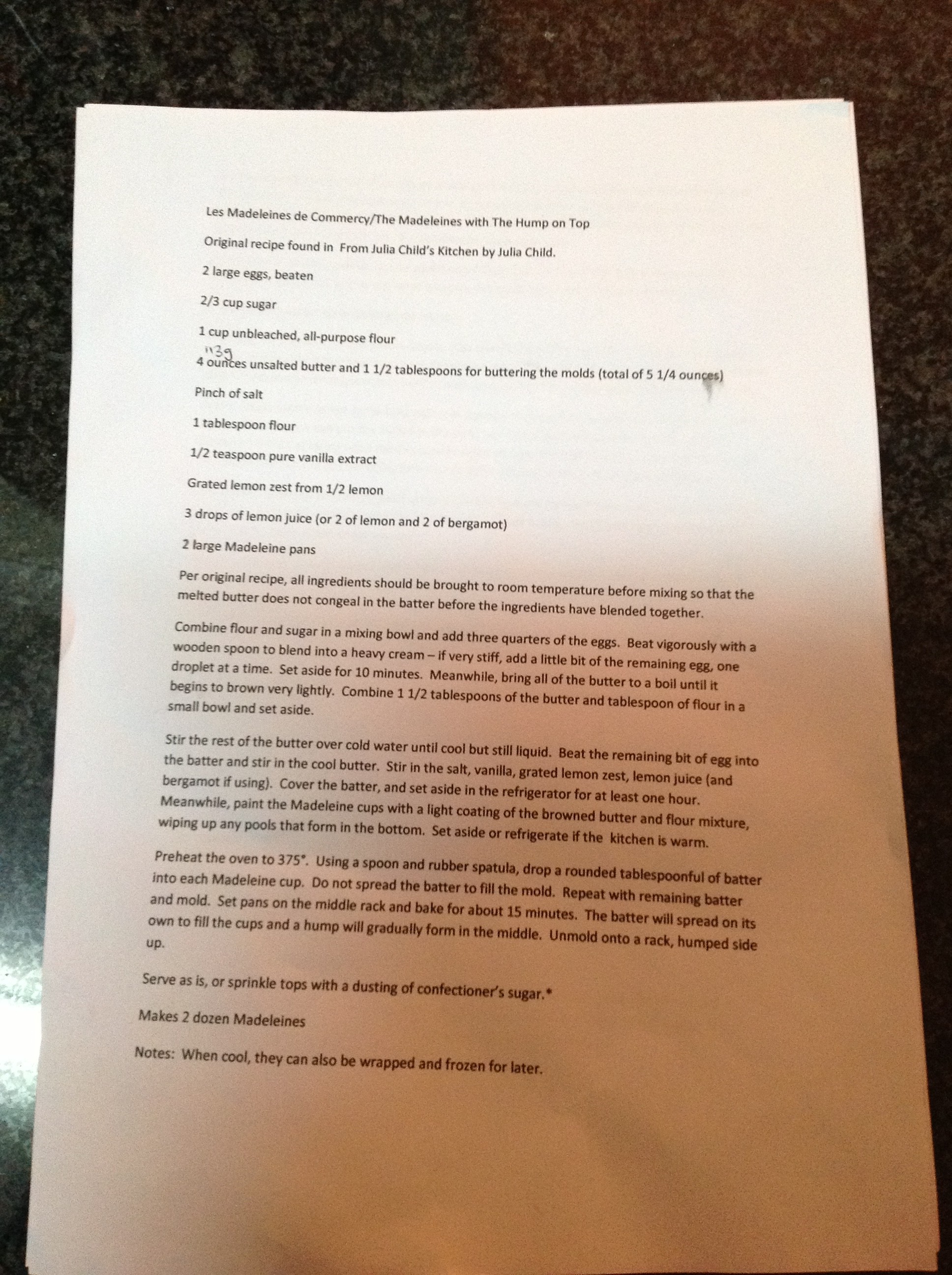 It was my first attempt @ a proper French Madeleine and so I googled until I found a recipe I wanted to try and it was the recipe by Julia Child.