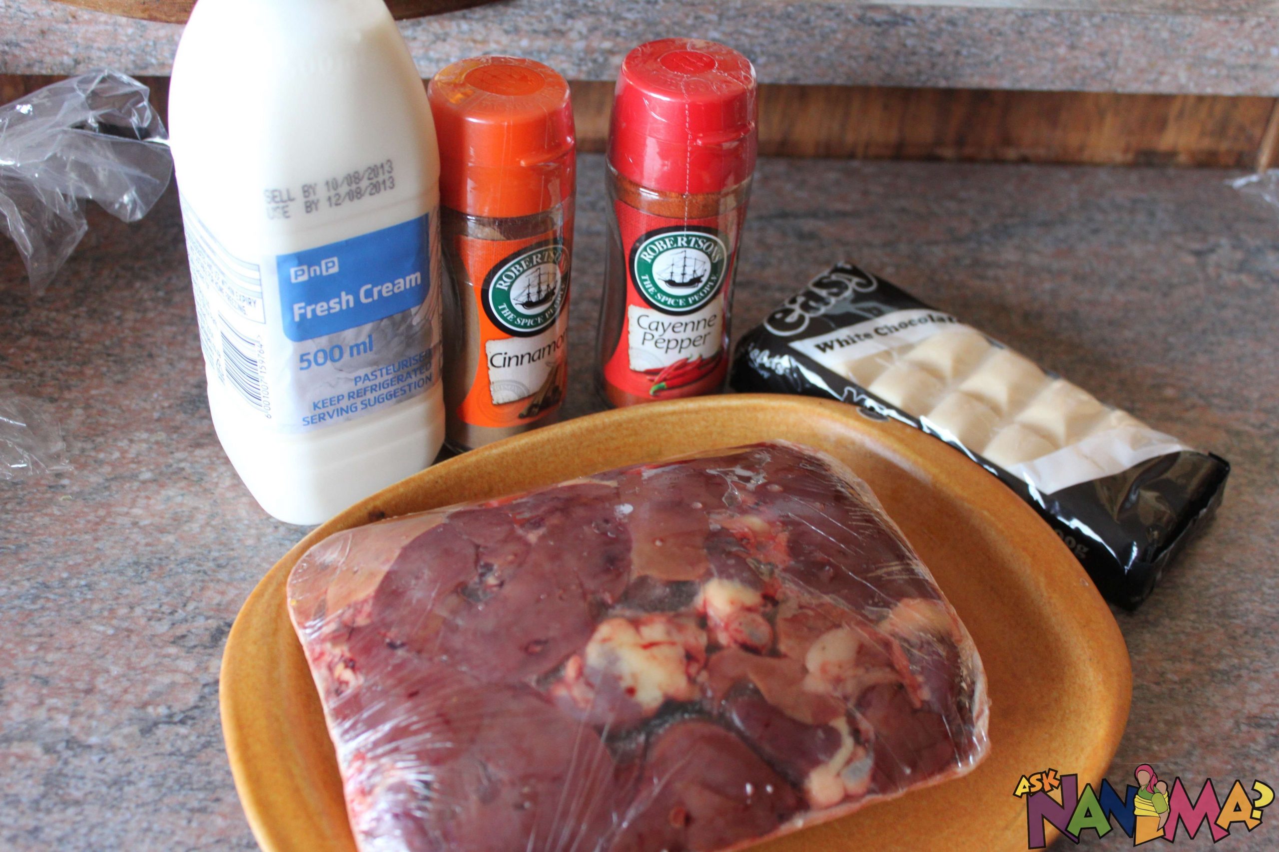 In a separate pan, fry chicken livers and add more Robertsons spices if you desire. Add the chakala mixture to the chicken livers. Add some fresh cream.