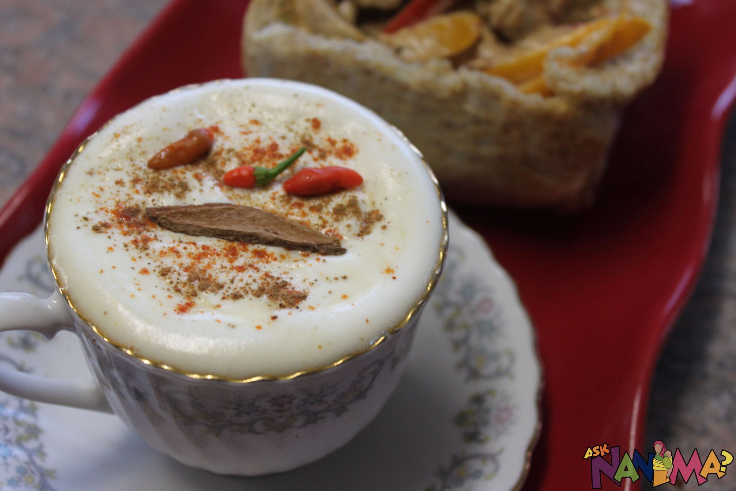 Spicy chai is a cross between a white hot chocolate and your traditional Cape Town Malay Ramadan drink, Boeber, which is usually milky, spicy and sweet. The white chocolate and milk gave the drink a very condensed milk taste, like you usually get from burfee and which is used as an ingredient in Boeber. I was surprised that the Robertsons cayenne pepper added a nice spicy taste to the chai. For summer variation, you can make a cool spicy chai and add either ice cream or crushed ice to make a spicy chai milkshake. You could also add sago as well as vermicelli. For the traditional Boeber taste, add some almond flakes, cardamon pods and rose water to the mixture.