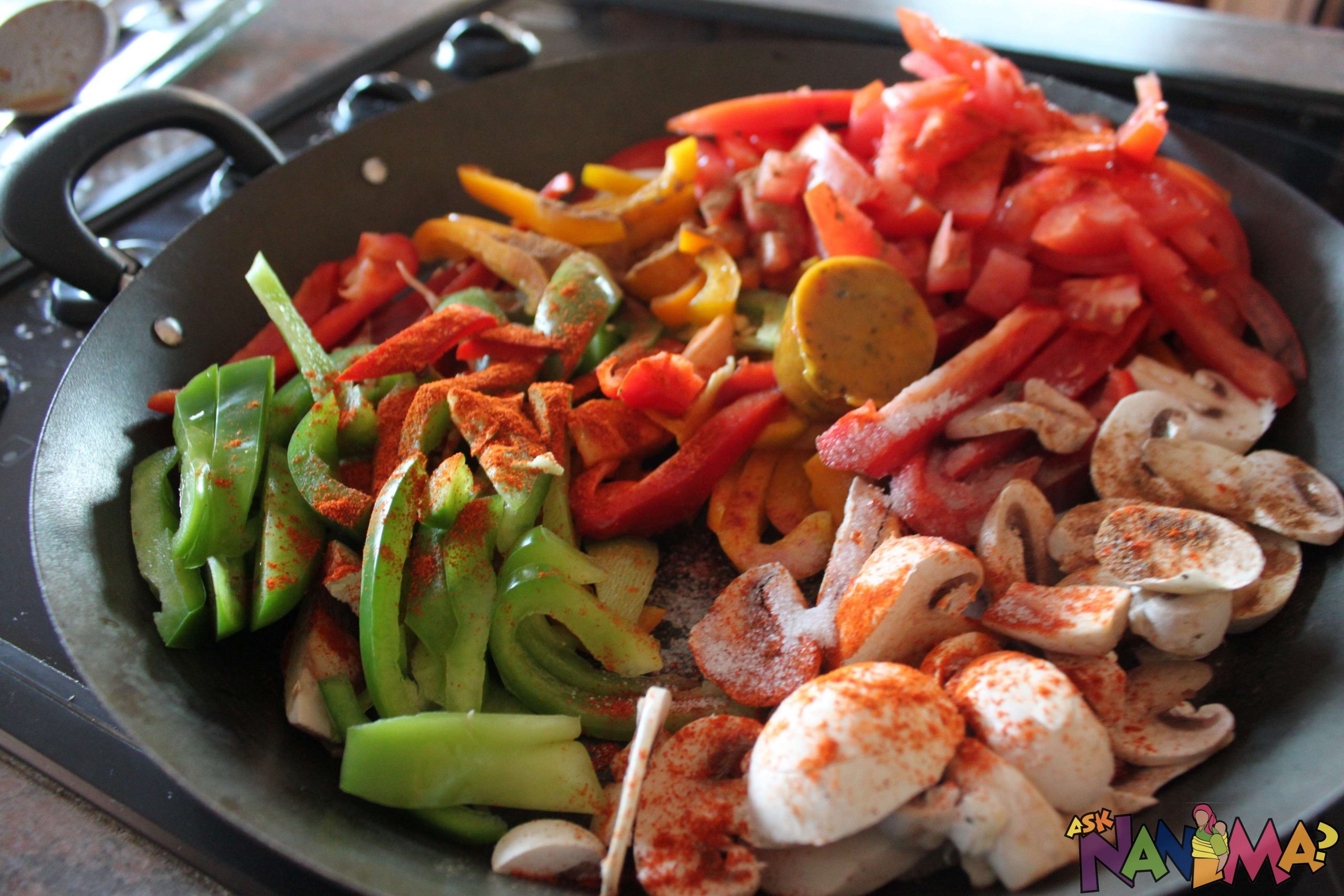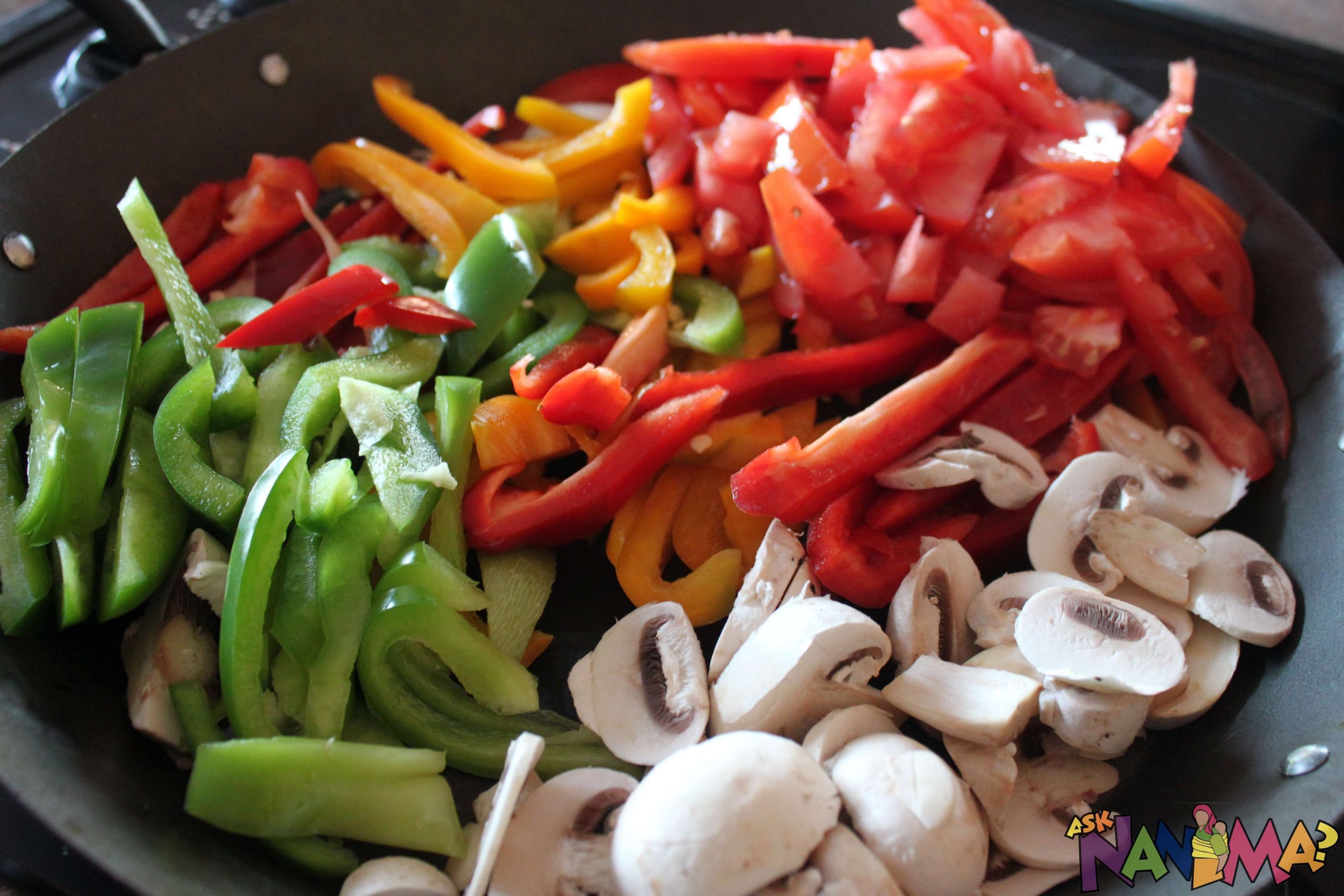 1 packet PnP red, green and yellow peppers, sliced