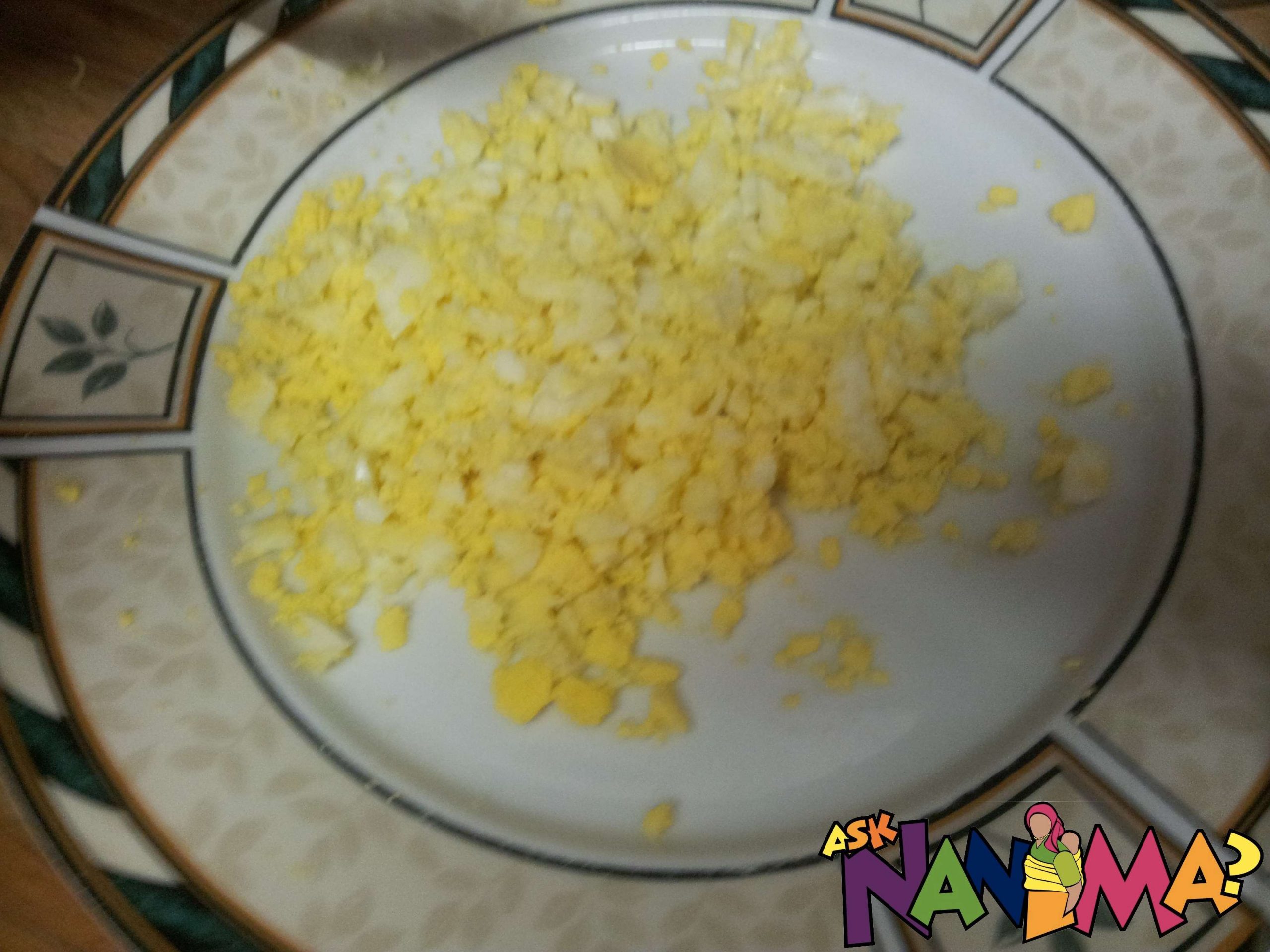 1 boiled egg deshelled and smashed into pieces