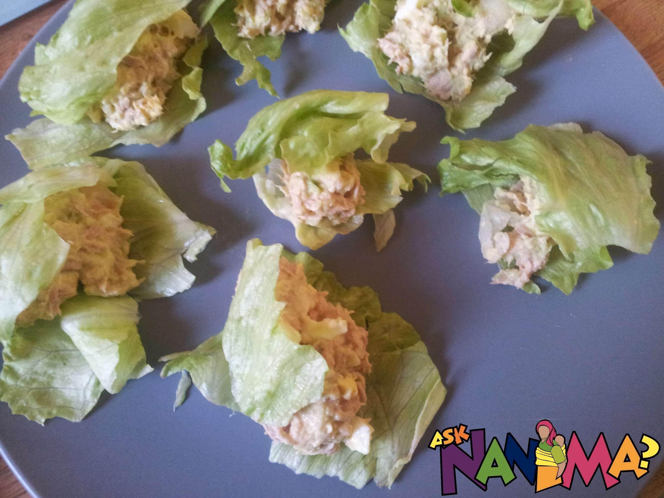 place lettuce pieces on a plate. spoon filling and close with another lettuce piece on top. Voila Tuna Lettuce clams.