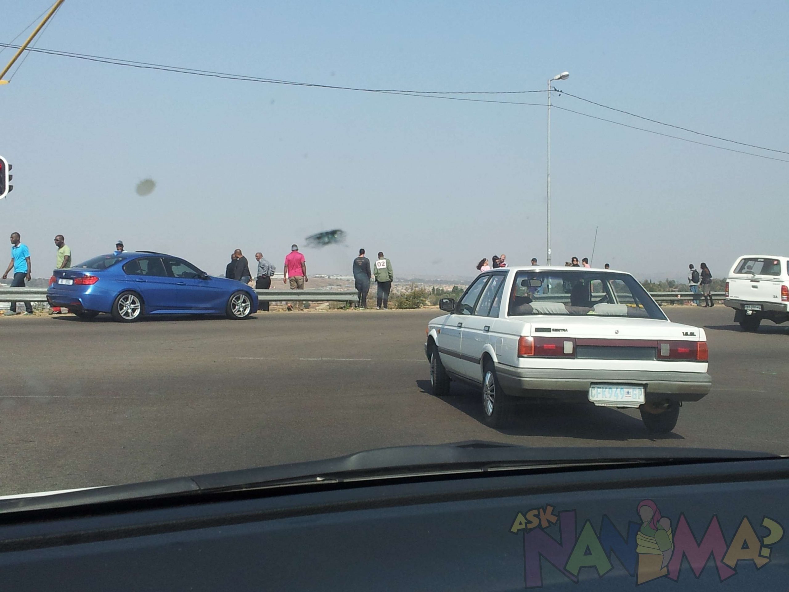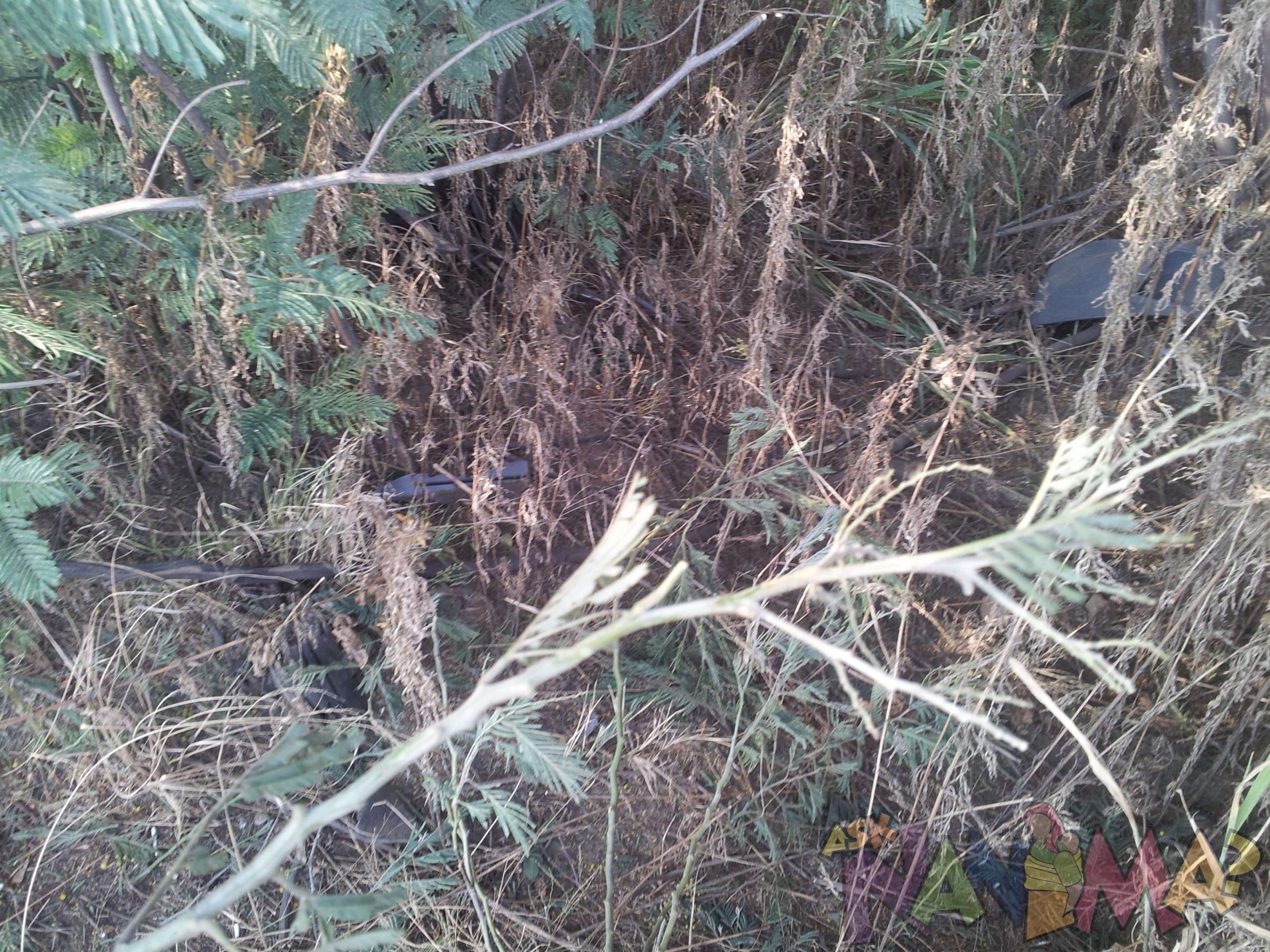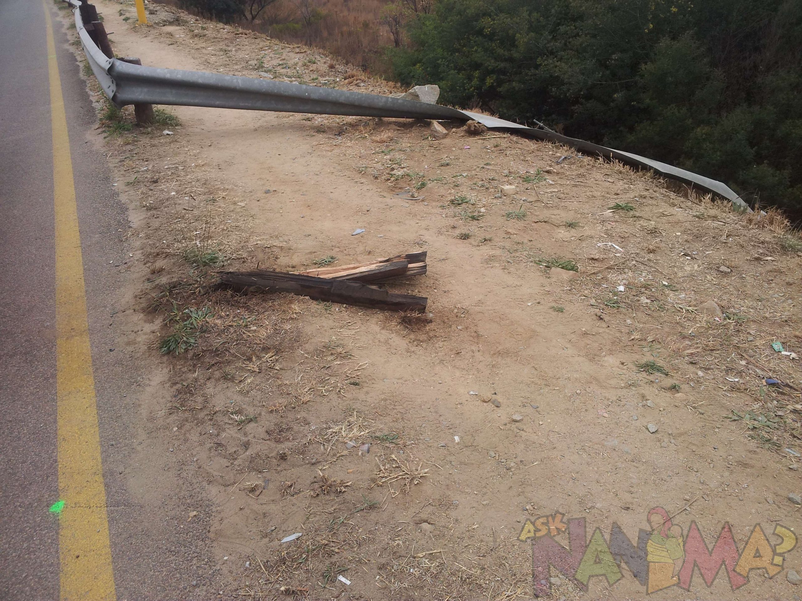 Security said at around 4h30 in the morning he heard a big bang. He started running towards the sound. He could not see anything as it was pitch dark. All he saw that the barrier was broken. He said the witnesses, the tow truck vultures and 2 people walking to work at that hour of the morning saw what happened. A speeding ford car came from no where at a very high speed. He told us where it landed and we went to investigate further. Here is what we found in pictures. For us seeing the lunch boxes made this situation hit home. The loved ones left behind are in our thoughts and prayers. This incident made me reflect on how sudden things can happen and also to hear people are walking to work at that hour that witnessed this, should really make us realise what painstaking efforts some people go through to get to work on time and we should really be empathetic and understand what some go through to get to work daily.